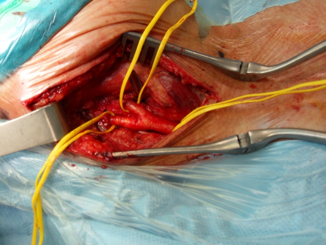 Notevole sviluppo ha presentato in questi anni la chirurgia endovascolare,cateteri, palloni e stent hanno progressivamente sostituto disostruzioni e by pass.Per cui anche nel nostro centro partichiamo PTA dei vasi in ogni sede e livello.Posizionando stent ed endoprotesi nei casi opportuni.Per cui la vasculopatia diabetica e gli aneurismi sia periferici che aortici possono essere adeguatamente trattati in questo modo, in casi selezionati.