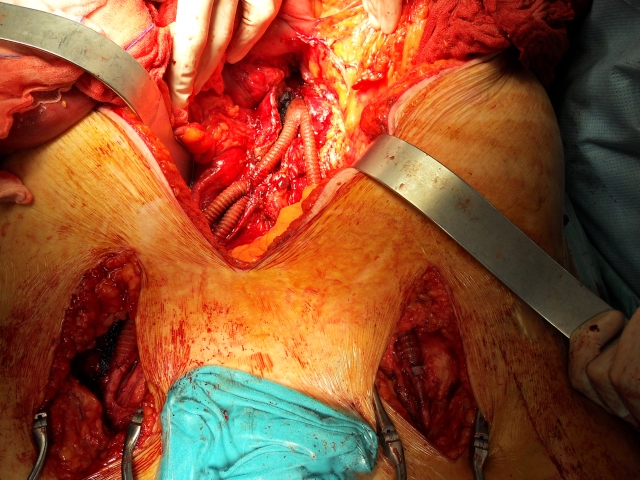 Vengono quindi trattati tutti i vasi dell'addome, come aorta, iliache,arterie renali, e spacniche(tripode celiaco, arteria epatica,arteria splenica, arteria mesenterica superiore).